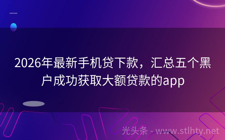 2026年最新手机贷下款,汇总五个黑户成功获取大额贷款的app