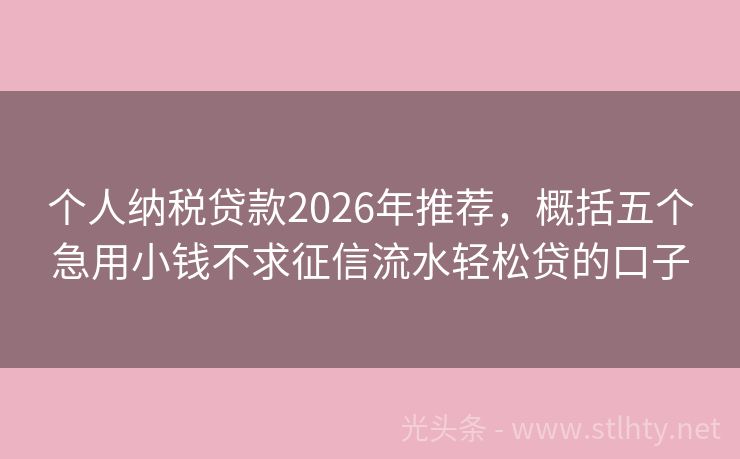 个人纳税贷款2026年推荐,概括五个急用小钱不求征信流水轻松贷的口子
