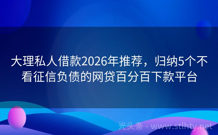 大理私人借款2026年推荐,归纳5个不看征信负债的网贷百分百下款平台