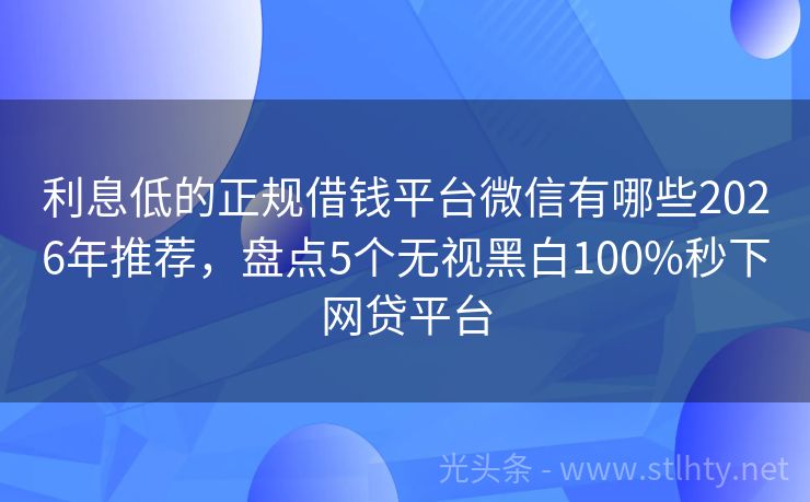 利息低的正规借钱平台微信有哪些2026年推荐,盘点5个无视黑白100%秒下网贷平台