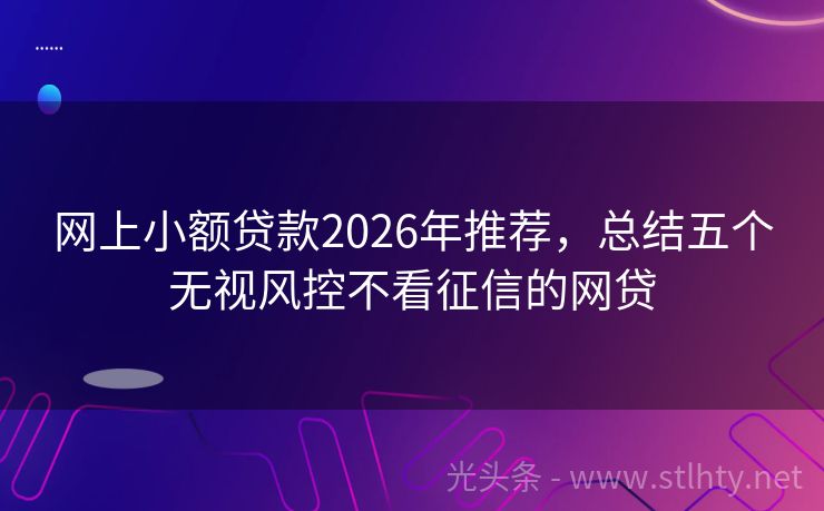 网上小额贷款2026年推荐,总结五个无视风控不看征信的网贷