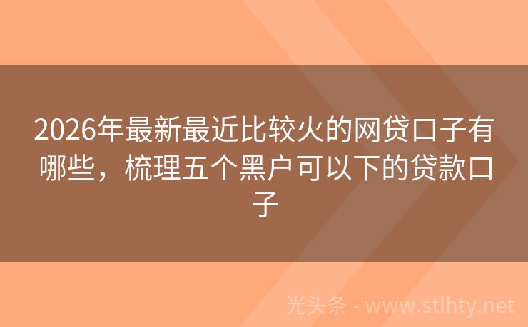 2026年最新最近比较火的网贷口子有哪些,梳理五个黑户可以下的贷款口子 在当下这个信息时代,最近比较火的网贷口子有哪些为大众提供了极大的便利,让人们可以轻松快捷地解决资金需求,就让我来为大家详细介绍一下市面上口碑较好的五个最近比较火的网贷口子有哪些,帮助大家找到适合自己的最近比较火的网贷口子有哪些,它们各有特色,快来跟我一起看看吧! 2026年的最近比较火的网贷口子有哪...