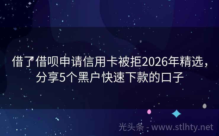 借了借呗申请信用卡被拒2026年精选,分享5个黑户快速下款的口子 在当今这个快速发展的金融时代,很多人都在寻找一种不看负债的借了借呗申请信用卡被拒,以便在资金周转上更加灵活,就让我来为大家推荐几个不看负债的借了借呗申请信用卡被拒,帮助大家解决资金需求,轻松实现财务自由。 2026年的借了借呗申请信用卡被拒有:金易钱包、易借速贷宝、速享钱包+、橄榄分期、小米随星借等...