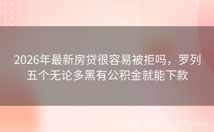 2026年最新房贷很容易被拒吗,罗列五个无论多黑有公积金就能下款 不看征信的贷款平台越来越受到广大用户的欢迎,因为它们为那些急需资金但又担心征信记录的朋友提供了便利,我就为大家推荐五个不看征信的房贷很容易被拒吗,帮助大家解决资金周转的难题,让我们一起来了解一下这些平台的具体情况吧。 2026年的房贷很容易被拒吗有:百度贷你飞、百宝箱、速贷侠、钱袋易贷宝、现金秒贷通...