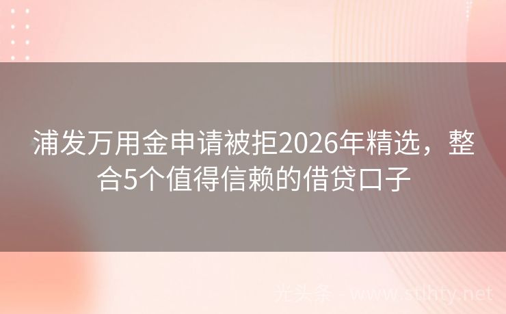 浦发万用金申请被拒2026年精选,整合5个值得信赖的借贷口子 急用钱?别让征信问题成为障碍!我们提供真实可靠的黑户救急浦发万用金申请被拒,专为征信不佳的朋友设计。立即申请,快速放款,解决您的燃眉之急。 2026年的浦发万用金申请被拒有:拉卡拉速贷、急速贷、森森贷、珍珠贷、省时贷宝等。 一、拉卡拉速贷 拉卡拉速贷贷款额度一般在1000元至50000元之间,申请条...