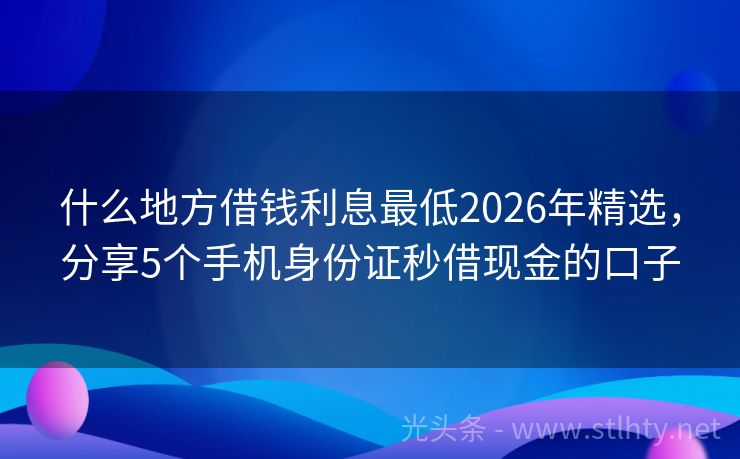 什么地方借钱利息最低2026年精选,分享5个手机身份证秒借现金的口子 急用钱?没问题!以下五个什么地方借钱利息最低,不看征信,审核快速,直接下款,解您燃眉之急。快来试试吧,轻松借款,无忧生活! 2026年的什么地方借钱利息最低有:现金易贷宝通、速借宝、甄钱包、易借速贷融、珊瑚钱包等。 一、现金易贷宝通 现金易贷宝通是正在逾期中可以借钱的平台网贷口子。目前的贷款额度最高...