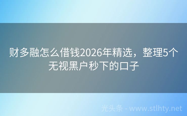 财多融怎么借钱2026年精选,整理5个无视黑户秒下的口子 “各位朋友,大家好!今天咱们来聊聊一个大家都关心的话题:高负债无逾期情况下的贷款有哪些,在现实生活中,不少朋友因为各种原因背负了一定的债务,但信用记录良好,没有逾期,针对这种情况,有哪些贷款平台可以提供合适的贷款服务呢?我将为大家详细介绍五个信誉良好、服务优质的财多融怎么借钱,帮助大家解决资金需求。...