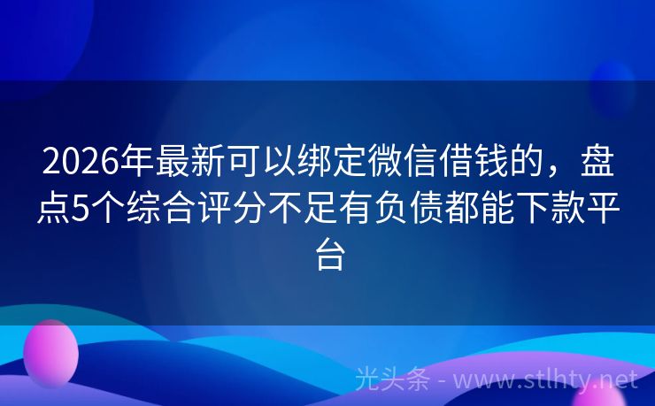 2026年最新可以绑定微信借钱的,盘点5个综合评分不足有负债都能下款平台 在这个数字化时代,人脸识别技术已成为许多借钱平台的标配,但仍有不少朋友对这种验证方式感到不适或担忧隐私安全,好消息是,市面上依然存在一些可以绑定微信借钱的,它们既能保障用户隐私,又能提供便捷的借款服务,下面,就让我来为大家详细介绍五个最新的、无需人脸识别的可以绑定微信借钱的。 2026年的可以绑定微...
