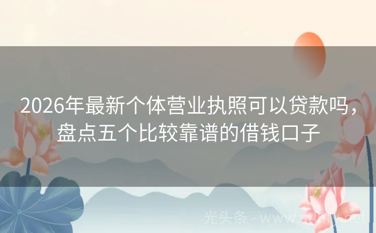 2026年最新个体营业执照可以贷款吗,盘点五个比较靠谱的借钱口子 嘿,各位年轻的朋友们,是不是在为学业、创业或是生活中的突发状况急需一笔资金呢?别担心,现在市面上有很多专门为学生提供借款的平台,我就来给大家详细介绍几个热门的个体营业执照可以贷款吗,帮你们解决资金难题,咱们就一起看看这五个平台的具体情况吧! 2026年的个体营业执照可以贷款吗有:快易贷宝融、借贷易贷...