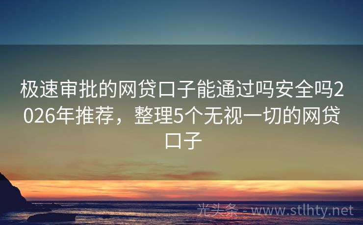 极速审批的网贷口子能通过吗安全吗2026年推荐,整理5个无视一切的网贷口子 大家好!在当今社会,贷款已经成为许多人在经济周转不灵时的重要选择,但有不少朋友因为各种原因,征信记录并不理想,这就让贷款变得有些困难,有哪些极速审批的网贷口子能通过吗安全吗不看征信,又容易下款呢?我就为大家推荐五个这样的极速审批的网贷口子能通过吗安全吗,帮助大家解决燃眉之急。 2026年的极速审批的...