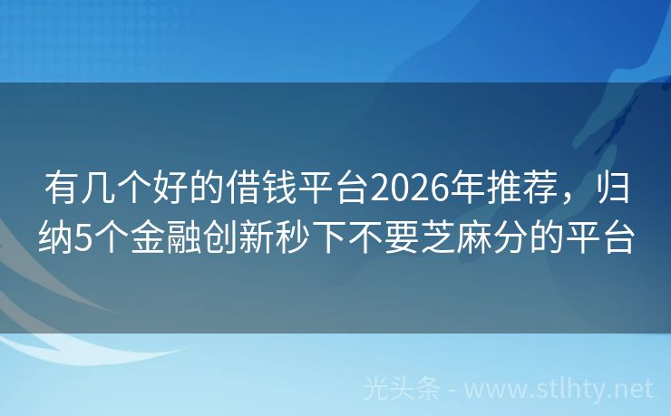 有几个好的借钱平台2026年推荐,归纳5个金融创新秒下不要芝麻分的平台 步入2026,资金难题不必忧心忡忡。五大新晋有几个好的借钱平台,诚意满满,助您轻松获取所需资金,无论是生活应急还是创业投资,都能迎刃而解,开启崭新的一年新篇章。 2026年的有几个好的借钱平台有:借款宝速融、融资易贷、现金秒融、现金秒到宝、爱木财富等。 一、借款宝速融 借款宝速融会在用户提交申请后进...
