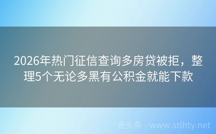 2026年热门征信查询多房贷被拒,整理5个无论多黑有公积金就能下款 大家好,今天咱们来聊聊“征信查询多房贷被拒”这个话题,所谓“贷款口子”,其实就是指那些提供贷款服务的平台或渠道,现在市面上有很多优秀的贷款平台,为了让大家更好地了解和选择,接下来我将为大家详细介绍五个颇具口碑的征信查询多房贷被拒,让我们一起来看看这些平台的额度、优势和特色服务吧! 2026年的征信查...