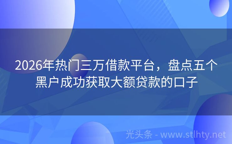 2026年热门三万借款平台,盘点五个黑户成功获取大额贷款的口子 在这个快速发展的时代,借钱已经不再是一件难事,只要动动手指,就能在手机上轻松申请到贷款,市面上有很多可以借钱的应用,今天我要为大家详细介绍五个备受好评的三万借款平台,这些平台各有特色,满足不同用户的需求,让我们一起来了解一下吧。 2026年的三万借款平台有:信用卡管家、民生易贷、新浪易借、信用卡贷、...