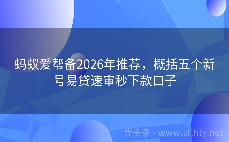 蚂蚁爱帮备2026年推荐,概括五个新号易贷速审秒下款口子 聊到“蚂蚁爱帮备”,总有人一脸愁容地说:“我征信黑了,是不是就没戏了?”其实啊,这事儿真没那么绝对。征信虽然重要,但它也不是万能的。接下来,我就给大家揭秘几个,在征信“受伤”的情况下,也能尝试的蚂蚁爱帮备。记住哦,机会总是留给那些敢于尝试的人! 2026年的蚂蚁爱帮备有:小金鹤分期、闪借易贷通、一点...