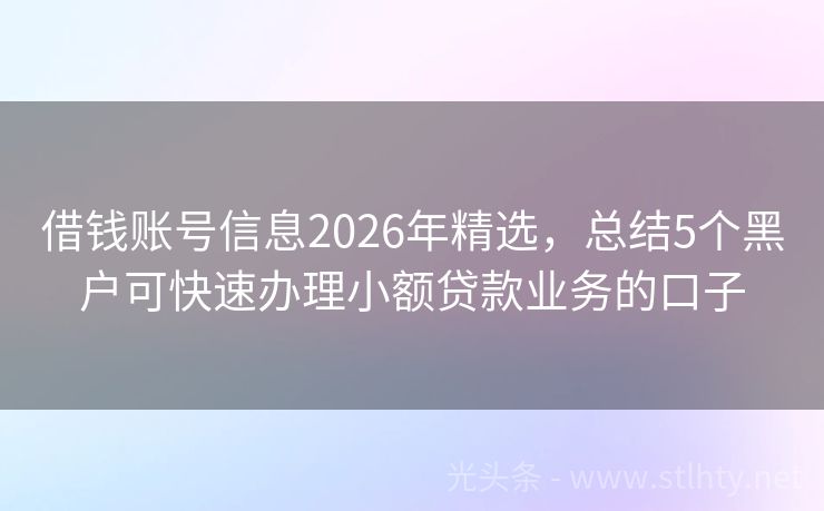 借钱账号信息2026年精选,总结5个黑户可快速办理小额贷款业务的口子 急需资金周转?别让逾期记录成为绊脚石!我们精选5大正规借钱账号信息,无视逾期,快速审批,轻松下款。告别繁琐流程,拥抱财务自由,就从这里开始! 2026年的借钱账号信息有:乐借宝融、现金流速贷、现金易借宝、替你速还、易融贷宝等。 一、乐借宝融 乐借宝融贷款,轻松解决你的资金烦恼!额度灵活多样,500元...