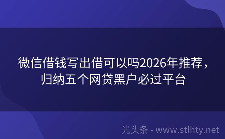 微信借钱写出借可以吗2026年推荐,归纳五个网贷黑户必过平台 面对这样的挑战,很多人可能会感到焦虑和无助。随着金融科技的发展,现在有多种借款平台可以为我们提供便捷的借贷服务,帮助我们渡过难关。以下是几个值得推荐的微信借钱写出借可以吗,它们各具特色,能够满足不同人群的借款需求。 2026年的微信借钱写出借可以吗有:借款易行、鑫融宝钱包、东方易贷、现金侠行、省时贷...