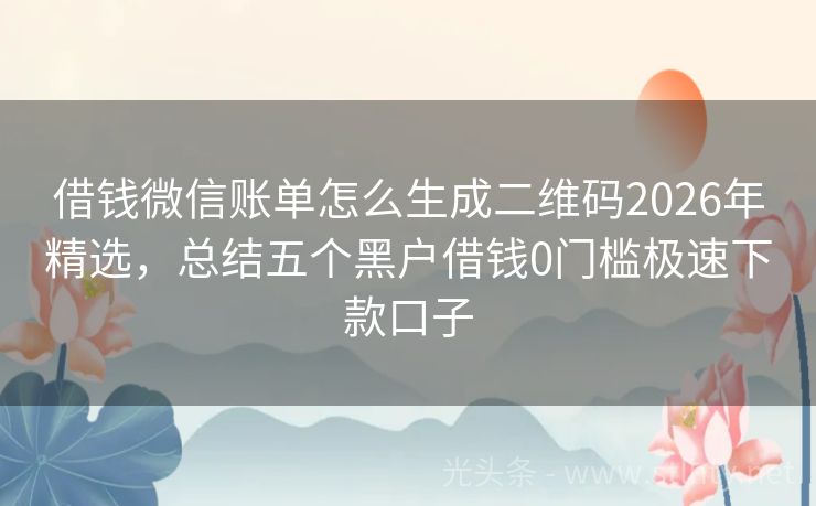 借钱微信账单怎么生成二维码2026年精选,总结五个黑户借钱0门槛极速下款口子 在寻找无视黑白、稳下款的借钱微信账单怎么生成二维码?试试这5个不查大数据、评分低也能借款的借钱微信账单怎么生成二维码,轻松解决资金难题。立即申请,告别等待! 2026年的借钱微信账单怎么生成二维码有:省时贷、现金秒借、借款宝贷融、融逸花、时时贷等。 一、省时贷 省时贷目前只面向于有半年以上营业执照的...