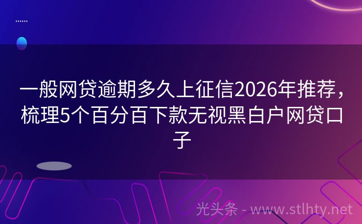 一般网贷逾期多久上征信2026年推荐,梳理5个百分百下款无视黑白户网贷口子 “大家好,今天咱们聊一聊“一般网贷逾期多久上征信”这个话题,在现实生活中,很多朋友因为征信记录不佳,想要贷款买车时遇到了难题,不用担心,今天我为大家推荐五个的一般网贷逾期多久上征信,它们专为有征信问题的用户提供服务,帮助大家顺利实现购车梦,让我们一起来看看这五个平台的具体情况吧!” 2026年的一般...