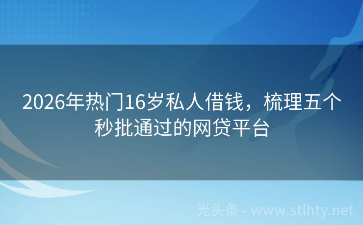 2026年热门16岁私人借钱,梳理五个秒批通过的网贷平台 专为重大逾期黑户开启希望之门!无需完美信用,也能贷来新生机。即刻启程,资金困境不再难解! 2026年的16岁私人借钱有:现金白鸽贷、借贷易贷宝、速贷宝盒、小熊白卡、现金侠易借宝等。 一、现金白鸽贷 现金白鸽贷推出的线上线下结合的贷款产品,面向有信用记录的个人用户,查征信。特点是操作便捷,贷款额度适中...