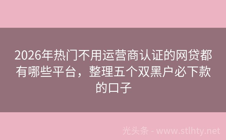 2026年热门不用运营商认证的网贷都有哪些平台,整理五个双黑户必下款的口子 不必担心征信问题!我们精选了5个当前有逾期记录、征信不佳也能下款的不用运营商认证的网贷都有哪些平台,助你轻松解决燃眉之急。立即申请,快速审批,让资金难题不再难倒你! 2026年的不用运营商认证的网贷都有哪些平台有:现金蜜蜂、石榴钱包、用钱宝速贷、米族金融、借贷宝易等。 一、现金蜜蜂 现金蜜蜂会在用户...