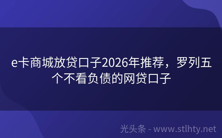 e卡商城放贷口子2026年推荐,罗列五个不看负债的网贷口子 大家好,今天我要给大家介绍一款非常实用的借款平台——“e卡商城放贷口子”,在这个快速发展的时代,资金周转的需求越来越普遍,而选择一个安全、可靠、高效的借款平台显得尤为重要,我将为大家推荐五个热门的e卡商城放贷口子,这些平台不仅具有丰富的借款额度,还有各自独特的优势和服务,相信总有一款能满足您的需求。...