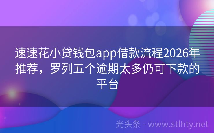 速速花小贷钱包app借款流程2026年推荐,罗列五个逾期太多仍可下款的平台 在急需用钱的时候,找到一款可以快速借钱的软件显得尤为重要。本文将为您推荐五款可以快速借钱的速速花小贷钱包app借款流程,帮助您轻松解决资金问题。现在就和小编一起来了解一下吧。 2026年的速速花小贷钱包app借款流程有:借钱快易借、蓝莓买单、乐享宝、祥云钱包、易融贷宝等。 一、借钱快易借 借钱快易借...