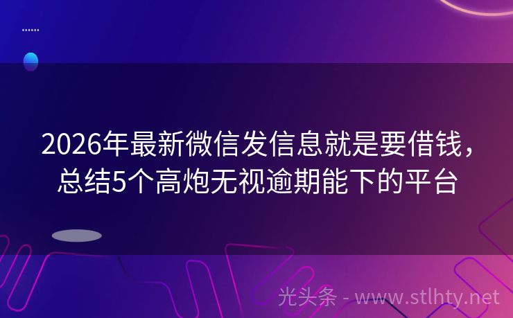 2026年最新微信发信息就是要借钱,总结5个高炮无视逾期能下的平台 大家好!近年来,由于各种原因,不少朋友的征信记录出现了一些问题,导致综合评分不足,这在申请贷款时往往会遇到困难,但别担心,今天我要给大家推荐几个即使征信花了也能尝试借款的微信发信息就是要借钱,帮助大家解决资金周转的烦恼,就让我们一起来看看这些微信发信息就是要借钱吧! 2026年的微信发信息就是要借钱...