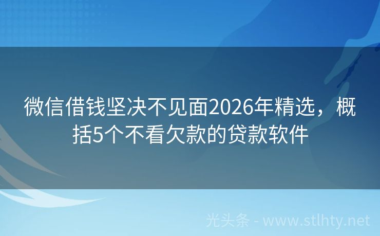 微信借钱坚决不见面2026年精选,概括5个不看欠款的贷款软件 面对信用挑战,我们为您提供微信借钱坚决不见面。探索五大精心挑选、兼容广泛信用背景的微信借钱坚决不见面,让资金流动更自由。正规渠道,灵活选项,助您跨越障碍,实现目标。 2026年的微信借钱坚决不见面有:闪借易贷宝、桔子分期、借钱花速贷、天天钱包、哆哆贷等。 一、闪借易贷宝 闪借易贷宝是一款小额信贷产品...
