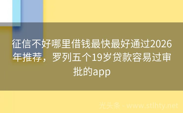 征信不好哪里借钱最快最好通过2026年推荐,罗列五个19岁贷款容易过审批的app 虽然面临信用挑战,但总有光明出路。介绍五家最新、专为复杂信用情况设计的征信不好哪里借钱最快最好通过,助力解决燃眉之急。透明流程,快捷审批,重拾信心,向前迈进。 2026年的征信不好哪里借钱最快最好通过有:借贷易行、借款宝易贷、迅融贷、速贷侠通、快易借速贷等。 一、借贷易行 借贷易行是一款创新型的信贷...