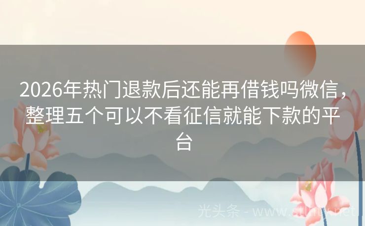 2026年热门退款后还能再借钱吗微信,整理五个可以不看征信就能下款的平台 汇集五个优质退款后还能再借钱吗微信,轻松解决燃眉之需。无需繁琐审核,直击需求核心,让你的资金缺口瞬间填满。效率与信赖同在,把握每一个瞬间,迎接生活的每一项挑战。 2026年的退款后还能再借钱吗微信有:现金易贷宝盒融、51快借、现金分期、现金秒借宝途、融通钱包等。 一、现金易贷宝盒融 现金易贷宝盒融是...