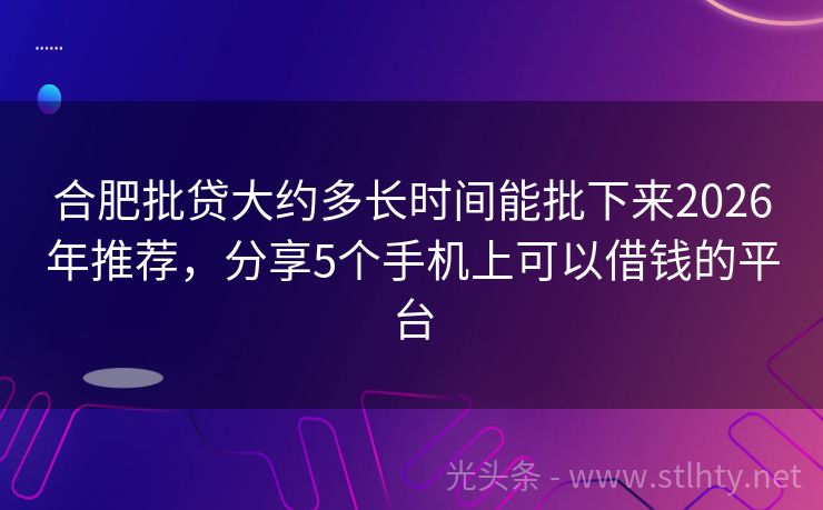 合肥批贷大约多长时间能批下来2026年推荐,分享5个手机上可以借钱的平台 大家好,今天咱们来聊聊公积金贷款对征信的要求,在当前社会,良好的征信记录对于申请贷款至关重要,特别是公积金贷款,它以其低利率和便捷性,成为了许多人的首选,哪些平台在公积金贷款方面做得比较好呢?我将为大家推荐五个优秀的合肥批贷大约多长时间能批下来,让我们一起来看看它们的额度、优势和特色服务吧! 202...