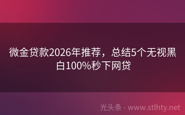 微金贷款2026年推荐,总结5个无视黑白100%秒下网贷 在当下快节奏的生活中,资金周转成了许多人的燃眉之急,但有些人因为征信问题,往往在申请贷款时遭遇难题,别担心,今天我要给大家推荐一些无视征信黑户的微金贷款,让您在急需资金时也能轻松借款。 2026年的微金贷款有:翡翠分期、现金易融贷途、闪电通、星辉借款、现金秒借宝途等。 一、翡翠分期 翡翠分期只要年龄...