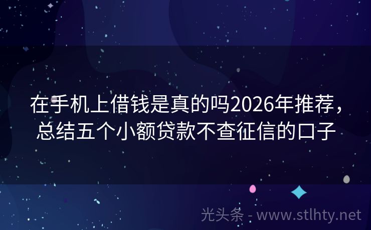 在手机上借钱是真的吗2026年推荐,总结五个小额贷款不查征信的口子 各位朋友们,是不是在为资金周转而犯愁?有没有因为信用问题而被银行拒之门外?别担心,今天我要给大家带来一个好消息——“在手机上借钱是真的吗”,就算你是黑户,也能在这几个平台上轻松借到钱!我将为大家详细介绍五个信誉良好、放款迅速的在手机上借钱是真的吗,帮助你解决资金难题。 2026年的在手机上借钱是真的...