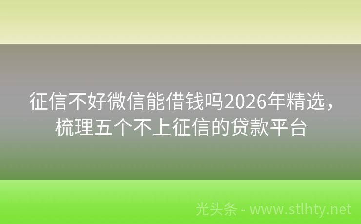 征信不好微信能借钱吗2026年精选,梳理五个不上征信的贷款平台 “大家好,今天要给大家介绍几个征信不好微信能借钱吗,让你在急需资金的时候,能够快速解决问题,轻松应对各种资金需求,就让我们一起来看看征信不好微信能借钱吗的具体情况吧!” 2026年的征信不好微信能借钱吗有:钱速达易、固金所、任性贷、读秒贷、现金易贷通等。 一、钱速达易 钱速达易网贷,资金短缺的救星!...