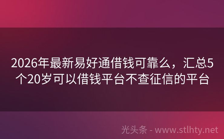 2026年最新易好通借钱可靠么,汇总5个20岁可以借钱平台不查征信的平台 无论是花户还是黑户,一万元借款不再遥不可及。精心挑选五家宽容度高的易好通借钱可靠么,为每一位寻求帮助的人打开希望之门。在这里,信用不是唯一标准,我们更重视你的实际需要。现在就小编一起来了解一下吧。 2026年的易好通借钱可靠么有:微博花花金、钱速融宝、智融Pro+钱包、团贷网、速贷Pro钱包等。 一...