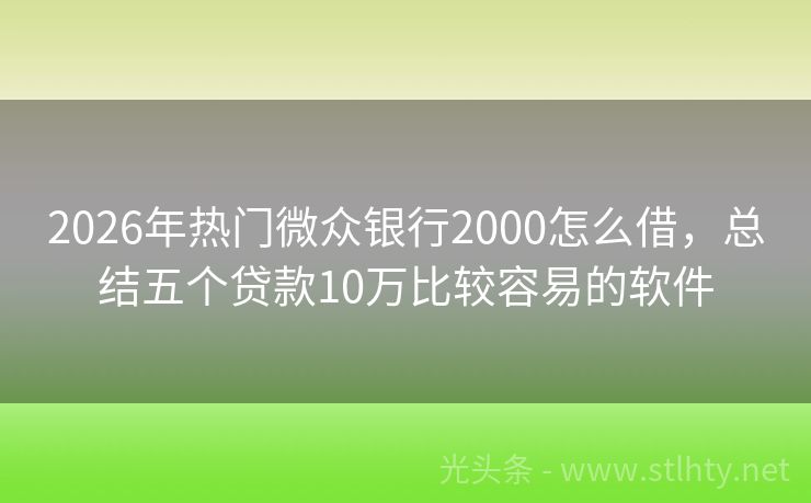 2026年热门微众银行2000怎么借,总结五个贷款10万比较容易的软件 大家好,今天我要给大家推荐一款关于“黑贷款马上下款软件”的几大热门平台,所谓的“黑贷款”,其实是指那些手续简单、审批快速、门槛较低的贷款服务,这些平台为广大借款人提供了便捷的借款渠道,下面我将为大家详细介绍五大微众银行2000怎么借,帮助大家找到适合自己的借款途径。 2026年的微众银行2000怎么...