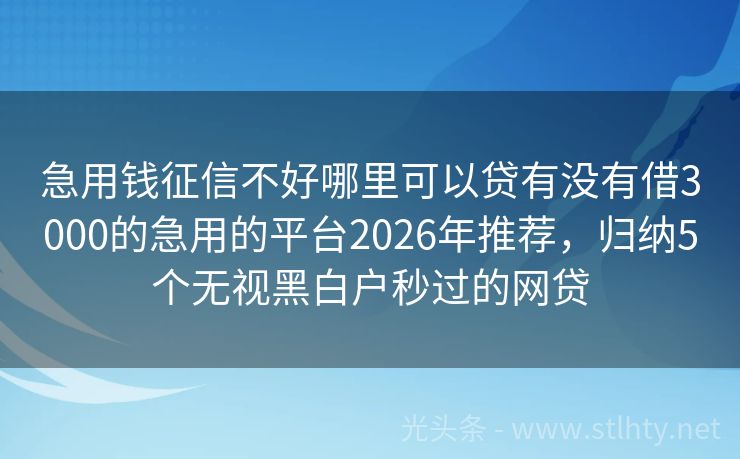 急用钱征信不好哪里可以贷有没有借3000的急用的平台2026年推荐,归纳5个无视黑白户秒过的网贷 面对网贷逾期困境,急需资金周转?别急,这里有5个对征信要求不高、审核宽松的急用钱征信不好哪里可以贷有没有借3000的急用的平台推荐给您! 2026年的急用钱征信不好哪里可以贷有没有借3000的急用的平台有:省时贷、金速钱包、现金侠借、头条放心借、现金贷易借融等。 一、省时贷 什么贷款不太看重征信秒下...