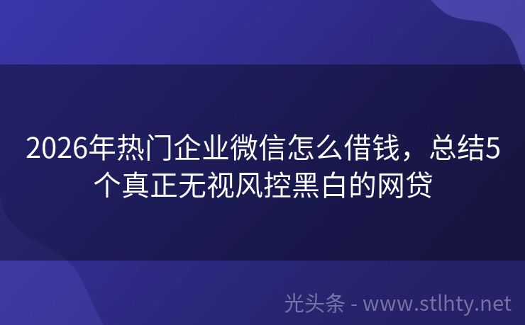 2026年热门企业微信怎么借钱,总结5个真正无视风控黑白的网贷 “大家好,今天要给大家聊聊一个备受关注的话题:2026年不看征信的企业微信怎么借钱,在现实生活中,有时候我们急需用钱,但又不想或者不能通过传统的征信渠道申请贷款,有哪些网贷平台可以满足我们的需求呢?我将为大家推荐五个不看征信的企业微信怎么借钱,让你在资金周转上多一份选择。” 2026年的企业微信怎么...