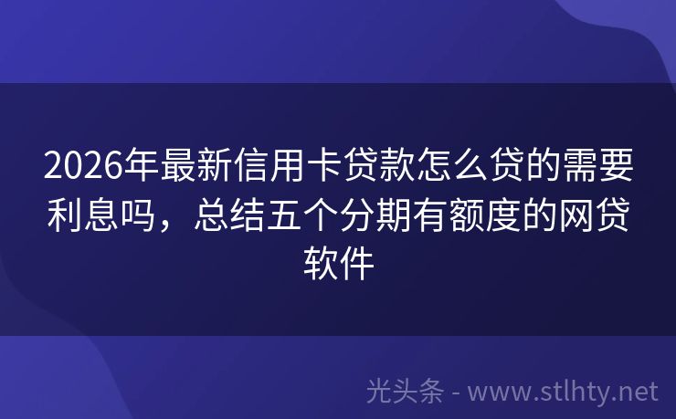 2026年最新信用卡贷款怎么贷的需要利息吗,总结五个分期有额度的网贷软件 近年来,贷款市场的需求日益旺盛,但传统的征信审查程序往往让一些急需资金的朋友感到繁琐,为此,不少金融平台推出了“信用卡贷款怎么贷的需要利息吗”的贷款服务,为广大借款人提供了更加便捷的融资途径,就让我来为大家推荐五个信誉良好、服务优质的信用卡贷款怎么贷的需要利息吗,让您在资金周转上更加轻松自如。 20...