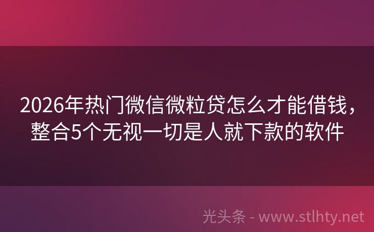 2026年热门微信微粒贷怎么才能借钱,整合5个无视一切是人就下款的软件 “黑户”一词在金融领域通常指的是信用记录不良或无法提供有效信用记录的用户,但在现实生活中,有时因为这些用户也需要资金周转,黑户哪里可以借1万元”就成了他们关注的焦点,就让我来为大家推荐几个专为这类用户设计的微信微粒贷怎么才能借钱,助你解决资金难题。 2026年的微信微粒贷怎么才能借钱有:信用快贷、快...