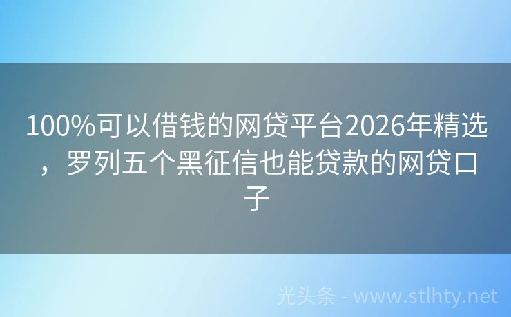 100%可以借钱的网贷平台2026年精选,罗列五个黑征信也能贷款的网贷口子 虽然面临信用挑战,但总有光明出路。介绍五家最新、专为复杂信用情况设计的100%可以借钱的网贷平台,助力解决燃眉之急。透明流程,快捷审批,重拾信心,向前迈进。 2026年的100%可以借钱的网贷平台有:拉卡拉速贷、现金白鸽、人人贷、借款易宝、快快易借等。 一、拉卡拉速贷 拉卡拉速贷是中国移动推出的一款...