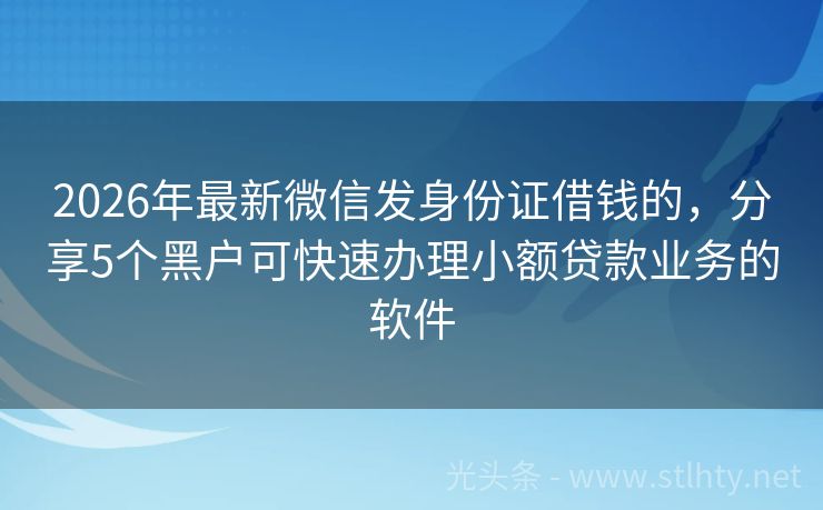 2026年最新微信发身份证借钱的,分享5个黑户可快速办理小额贷款业务的软件 即使身陷“黑户”的困扰,也不要放弃希望。这里有五种专为信用挑战者打造的微信发身份证借钱的,即便有过逾期记录,也能快速获得资金援助,开启新的篇章,重塑财务自由的梦想之路。 2026年的微信发身份证借钱的有:星愿贷、即刻贷、易贷宝速贷、同程提钱游、现金秒借宝途等。 一、星愿贷 对于需要小额资金周转的用户...