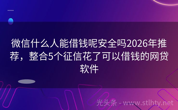 微信支付里借钱怎么开通2026年推荐,盘点5个18岁借款神器快速下款口子 “征信逾期了,心里是不是有点慌?别急,今天我就来给大家推荐几个即使征信逾期了也能借到钱的微信支付里借钱怎么开通,这些微信支付里借钱怎么开通不仅门槛相对较低,而且服务多样,额度灵活,让您在资金周转上不再犯难,咱们就详细了解一下这些微信支付里借钱怎么开通,看看哪个最适合你。” 2026年的微信支付里借钱...