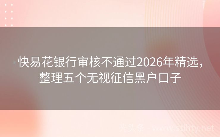 快易花银行审核不通过2026年精选,整理五个无视征信黑户口子 近年来,随着金融科技的不断发展,网贷平台为广大用户提供了便捷的贷款服务,就为大家带来一篇关于“黑户必下大额网贷”的推荐文章,我们将为您详细介绍五个热门快易花银行审核不通过,让您轻松解决资金问题,实现财富增长。 2026年的快易花银行审核不通过有:人人易贷、悦享Pro钱包、翡翠钱包、魔法速借、森森分期...