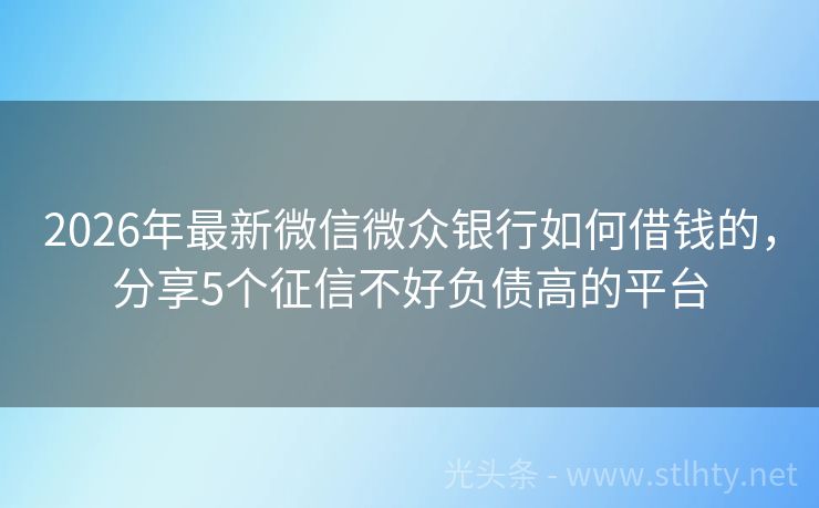 2026年最新微信微众银行如何借钱的,分享5个征信不好负债高的平台 “征信花”成了许多朋友在申请贷款时的难题,但别担心,今天我就来为大家详细介绍几个信誉好、审批快的贷款平台,让您急用钱时不再犯难,下面,就让我们一起来看看这五个微信微众银行如何借钱的,它们各自的额度、优势和特色服务吧! 2026年的微信微众银行如何借钱的有:金易钱包、随行付、时时钱包贷、借贷宝易融、现...