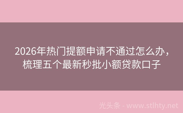 2026年热门提额申请不通过怎么办,梳理五个最新秒批小额贷款口子 探索灵活借贷之道,我们为您揭晓五个提额申请不通过怎么办,即便信用历史非最佳状态,也有机会获得高达5万元的资金支援,助您化解困境。那么有没有不看征信的提额申请不通过怎么办?盘点5个不看征信借款5万。 2026年的提额申请不通过怎么办有:小金鹿贷、甄宝分期、钱袋快借、现金易融贷宝、橄榄钱包等。 一、小金...