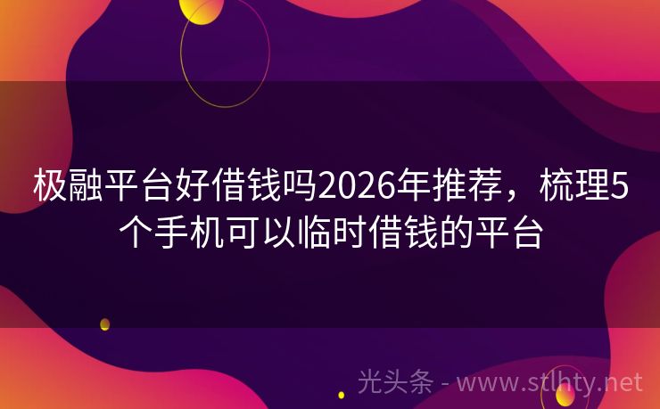 极融平台好借钱吗2026年推荐,梳理5个手机可以临时借钱的平台 信用小瑕疵,贷款大机会!这5个极融平台好借钱吗,频繁申请花户也能轻松下款。马上金融不看征信,让您的财务自由不再受限。快来体验,让资金流转无忧! 2026年的极融平台好借钱吗有:现金宝、现金侠途、小麦粒借款、小金鸽、菠萝钱包等。 一、现金宝 现金宝是对征信要求比较低的网贷平台,根据用户的综合条件审批额...