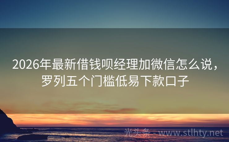 2026年最新借钱呗经理加微信怎么说,罗列五个门槛低易下款口子 征信不佳也能轻松借!我们精选5大借钱呗经理加微信怎么说,审核宽松,快速下款,解您燃眉之急。 2026年的借钱呗经理加微信怎么说有:洋钱速贷、我来贷、麦芽贷、橄榄信贷、你我易借等。 一、洋钱速贷 洋钱速贷也是可靠的小额信用贷款,是光大银行旗下的小额信用贷款,目前开放了最高5万元的借款额度,使用期限3-...