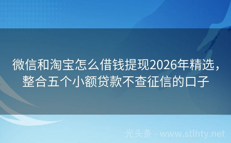 微信和淘宝怎么借钱提现2026年精选,整合五个小额贷款不查征信的口子 借款不查征信,轻松秒过!这5个微信和淘宝怎么借钱提现助你解决资金难题。无重大逾期,无不良信用记录,立即申请,快速到账,让你轻松应对财务需求。 2026年的微信和淘宝怎么借钱提现有:现金驿站、e微贷、琥珀分期、芒果分期、贷你无忧贷等。 一、现金驿站 现金驿站是点融网推出的一款个人消费信贷产品。贷款额度...