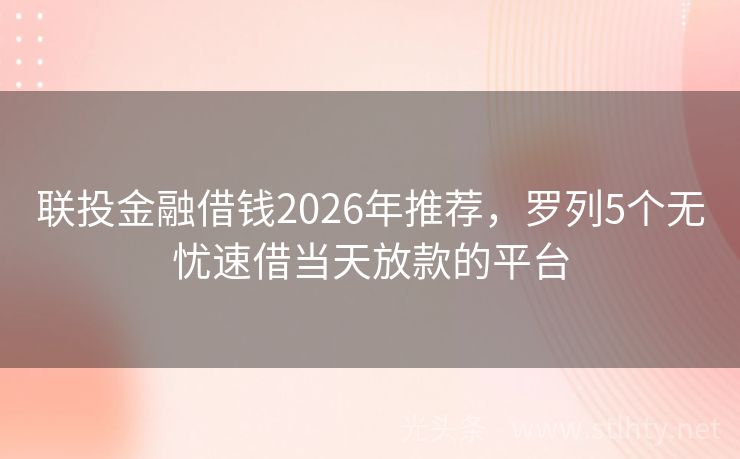 联投金融借钱2026年推荐,罗列5个无忧速借当天放款的平台 “借钱难,难于上青天?”这可能是许多借款人在寻找借款平台时的心声,但在众多借款平台中,总有那么几个能让您轻松借到钱的“宝藏”平台,就让我来为您揭秘“联投金融借钱”,为您推荐五个实力派借款平台,助您轻松解决资金难题。 2026年的联投金融借钱有:微粒分期、现金侠贷、借款宝快贷通、信用快贷、融悦Pro钱...